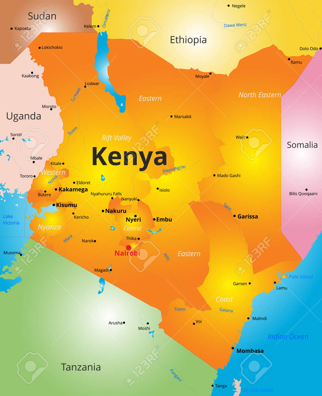 Kenia, oficialmente la República de Kenia, es un país del este africano, que tiene fronteras con Etiopía al norte, Somalia al este, Tanzania al sur, Uganda al oeste y Sudán del Sur al noroeste, con el océano Índico bañando su costa sureste. El lago Victoria está situado al suroeste y está compartido con Uganda y Tanzania. Su capital es Nairobi.